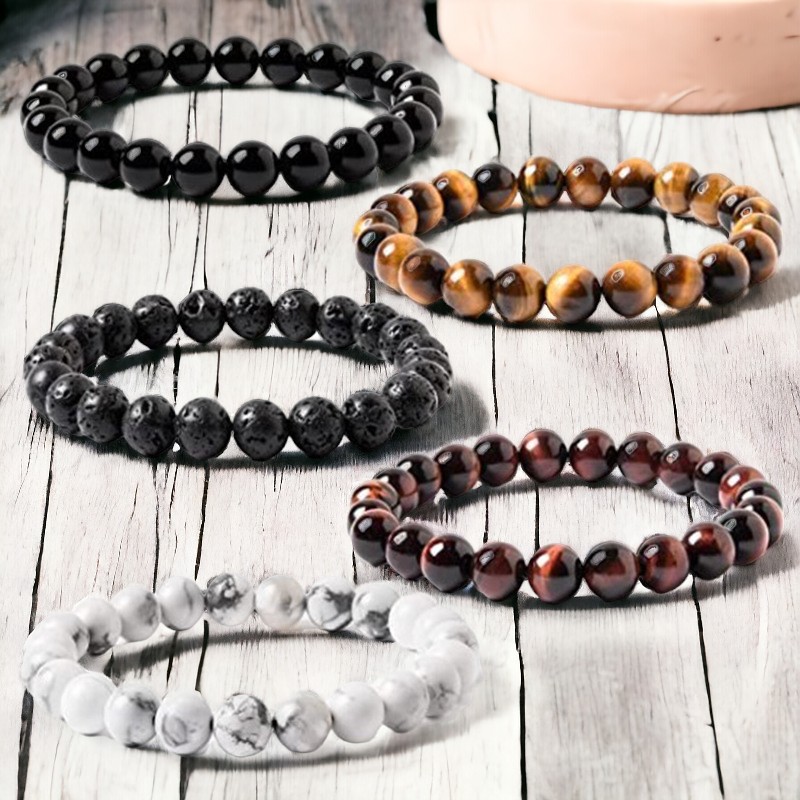 Various Stone Bracelets on stretch band.